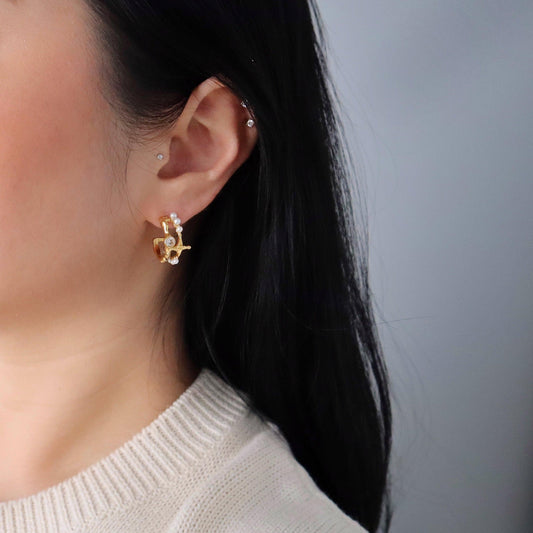 Astrid Pearl Star Double Hoops