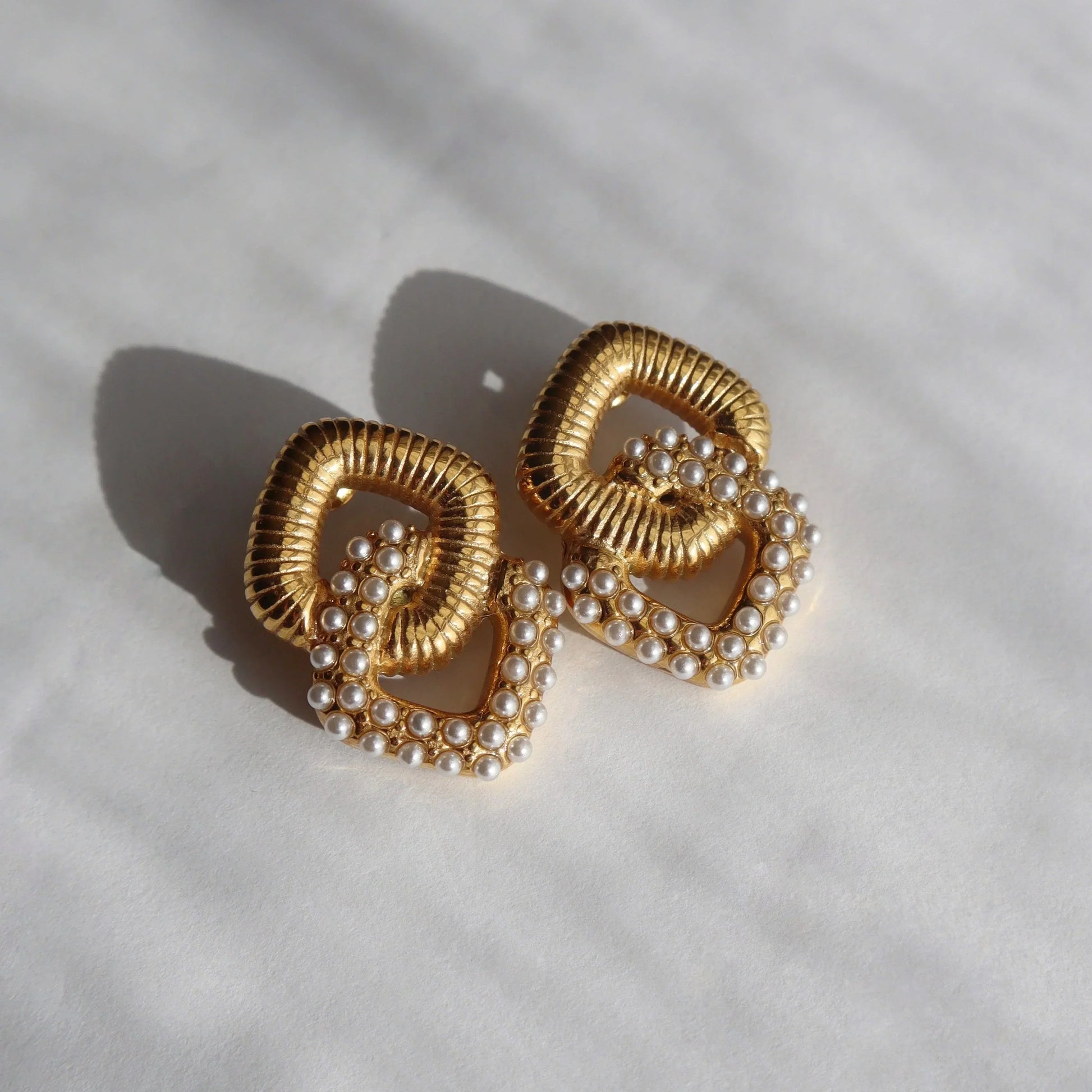 Elevate your evening look with our Amara Earrings. These statement earrings feature elegant pearl accents, adding a touch of luxury to any night out.