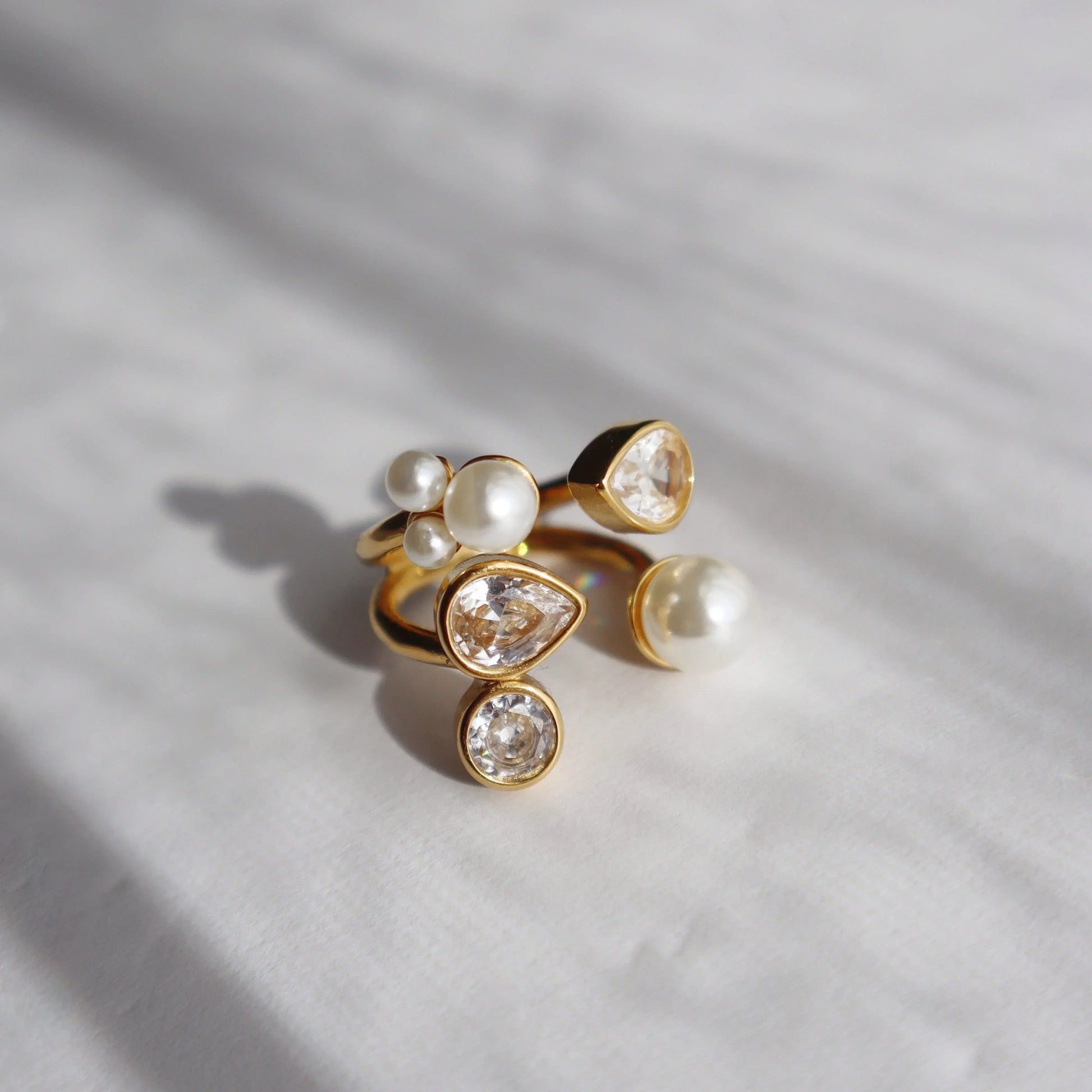Step into the spotlight with our Blossom Ring, a radiant and playful addition to your jewelry collection. Carefully crafted with pearls and shimmering zirconia, this burst of beauty is sure to elevate any outfit. This ring is a must have for any fashion forward individual.