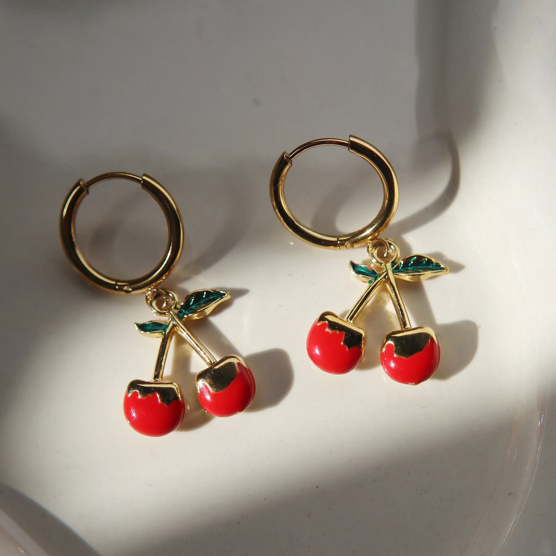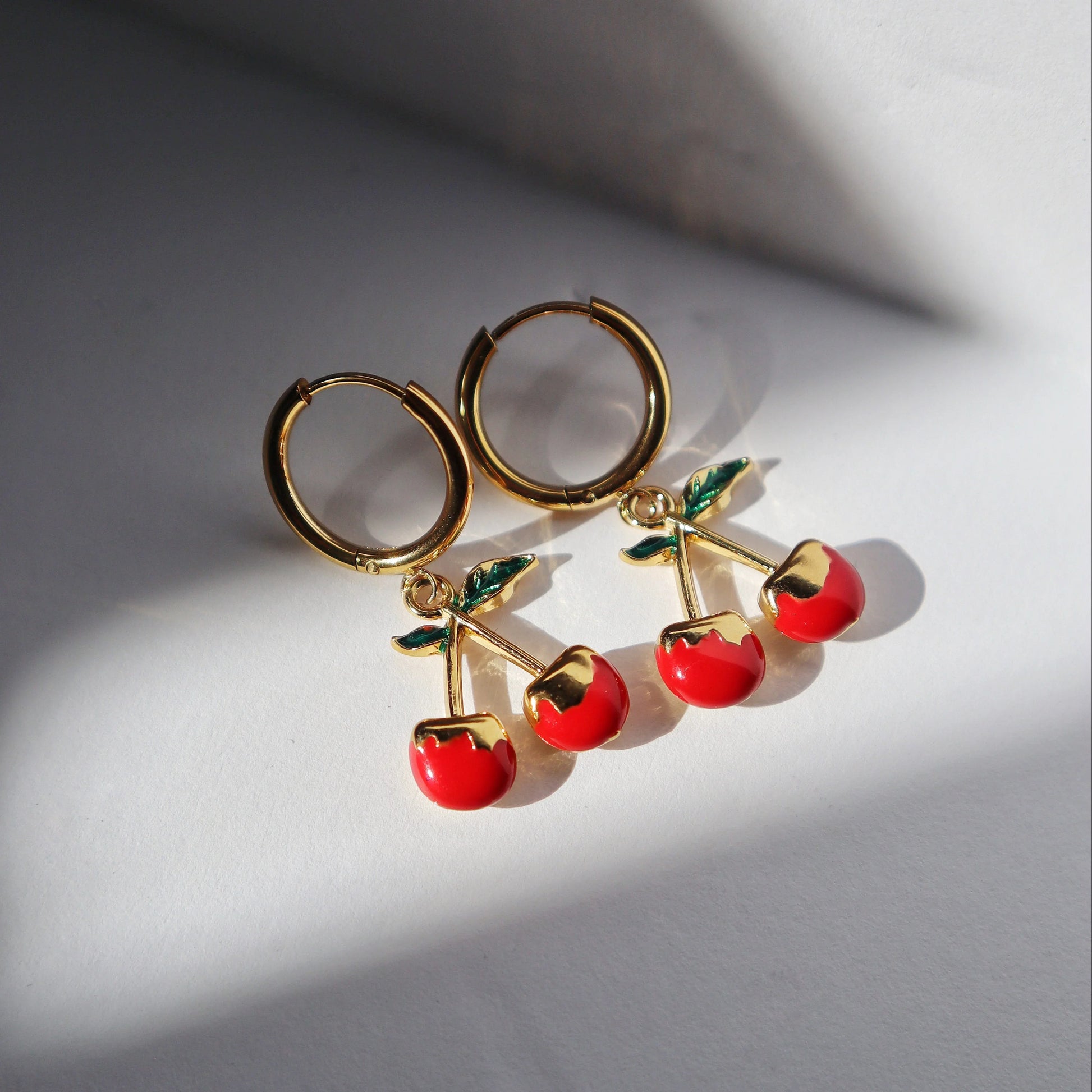 Add a playful pop to your look with these Cherry Charm Hoops! Featuring bright, trendy cherry charms dangling from classic hoops, they bring a fun and flirty vibe to any outfit. Perfect for adding a splash of color and personality.