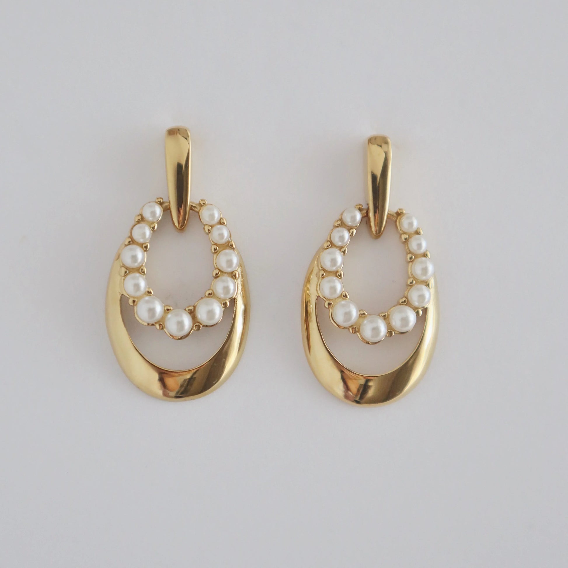 Featuring a unique dual-hoop design, the smaller inner hoop is adorned with delicate pearl details that add a timeless charm. These earrings blend modern elegance with vintage inspiration — perfect for elevating both everyday looks and special occasion outfits.
