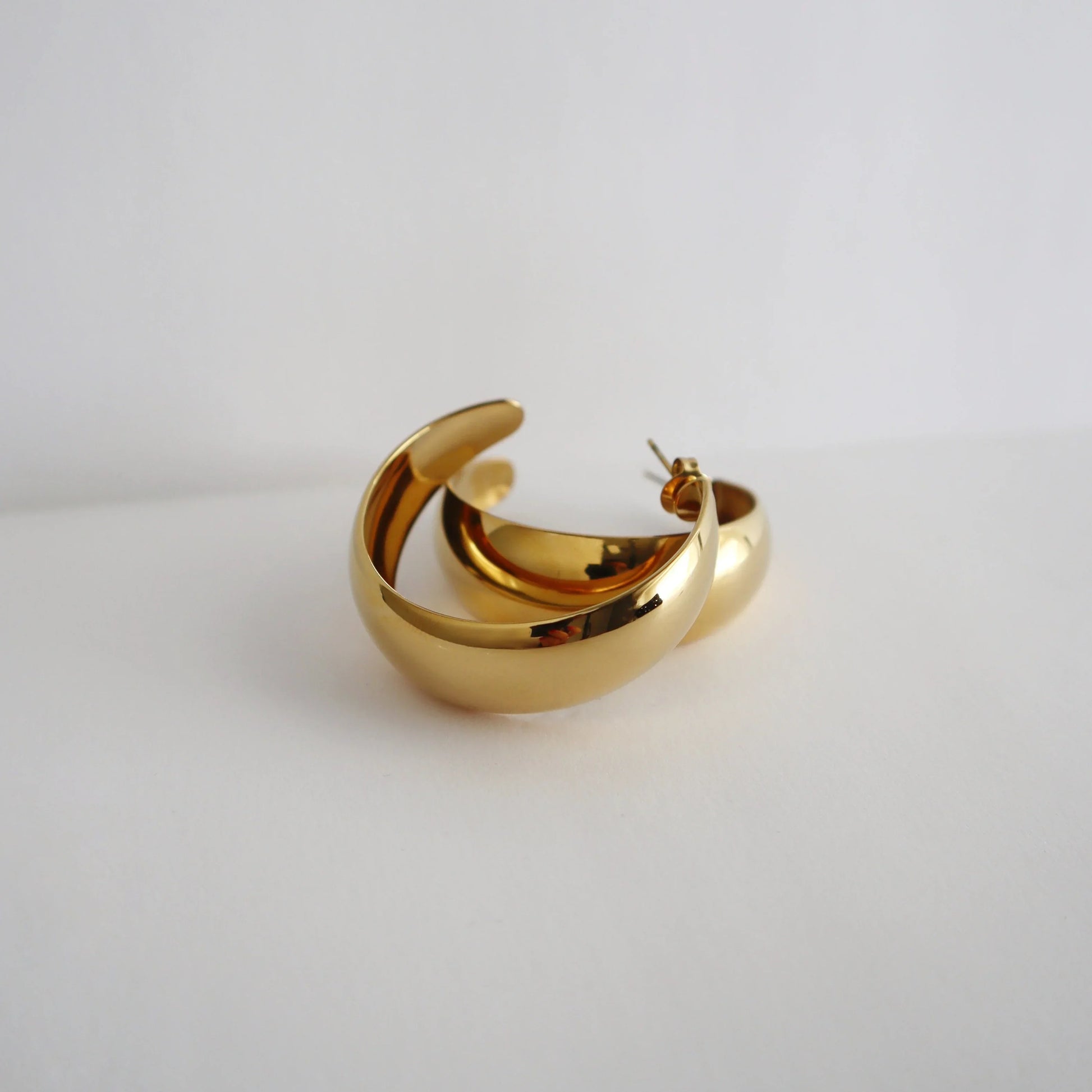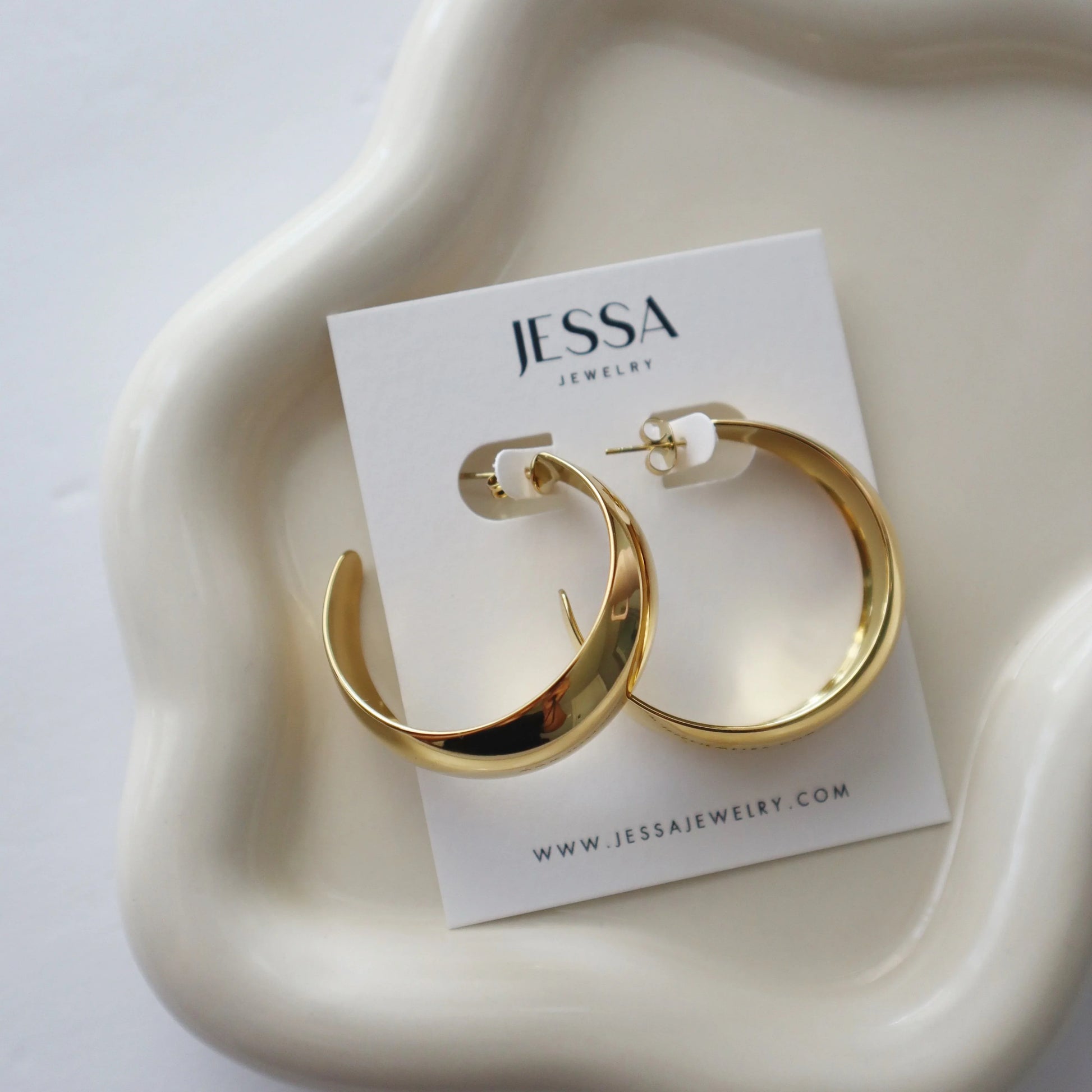 Bold, shiny, and impossible to miss. The Gabi Hoops bring bold style without the weight, you can rock a statement look all day long without discomfort. These large, chunky hoops have a high polish, mirror-like finish that catches the light from every angle.