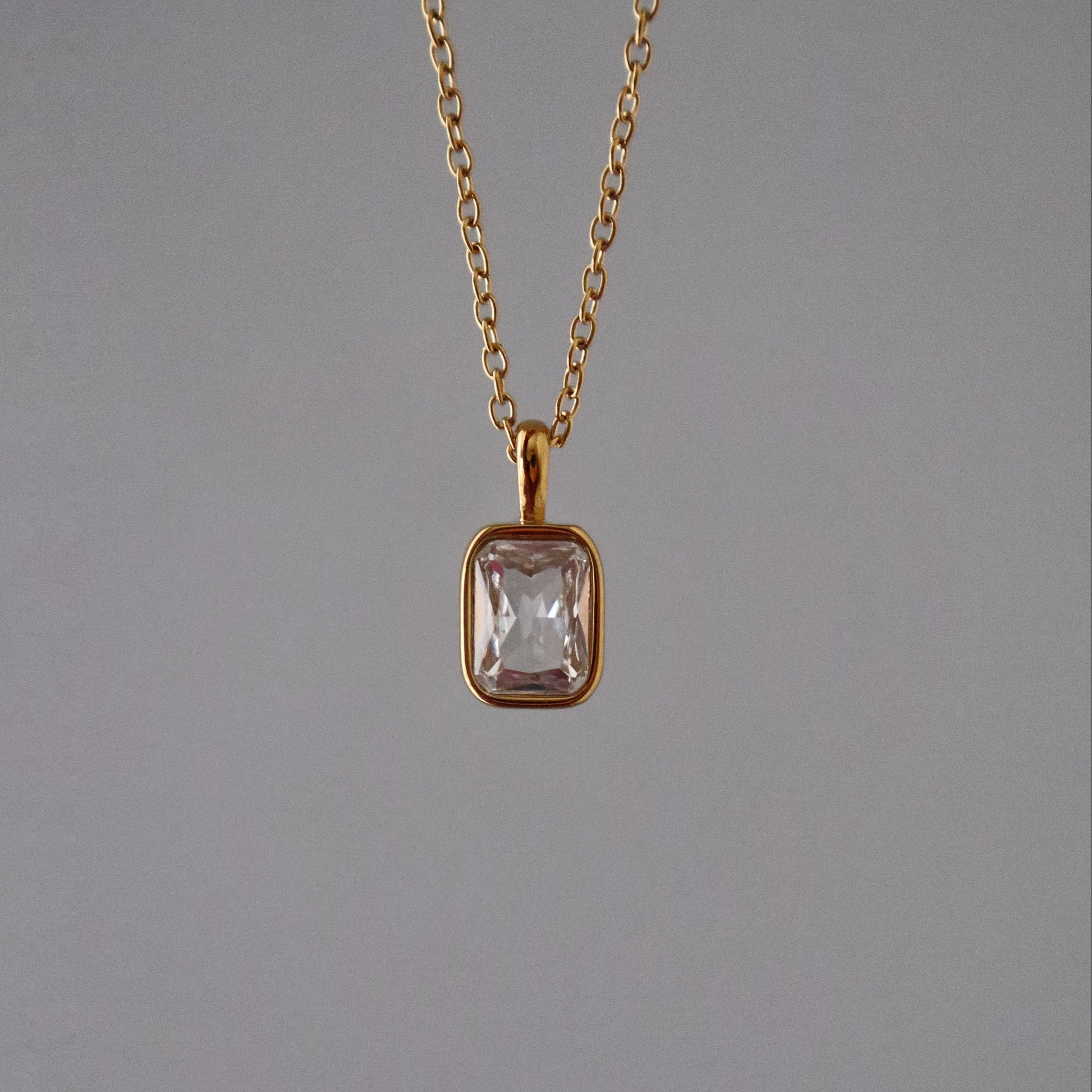 The Haven Necklace - a classic, timeless beauty. This rectangular bezel pendant showcases a CZ stone that catches the light effortlessly, paired with a fine dainty chain for an elegant everyday look. Perfect for everyday elegance or to dress up for special occasions.