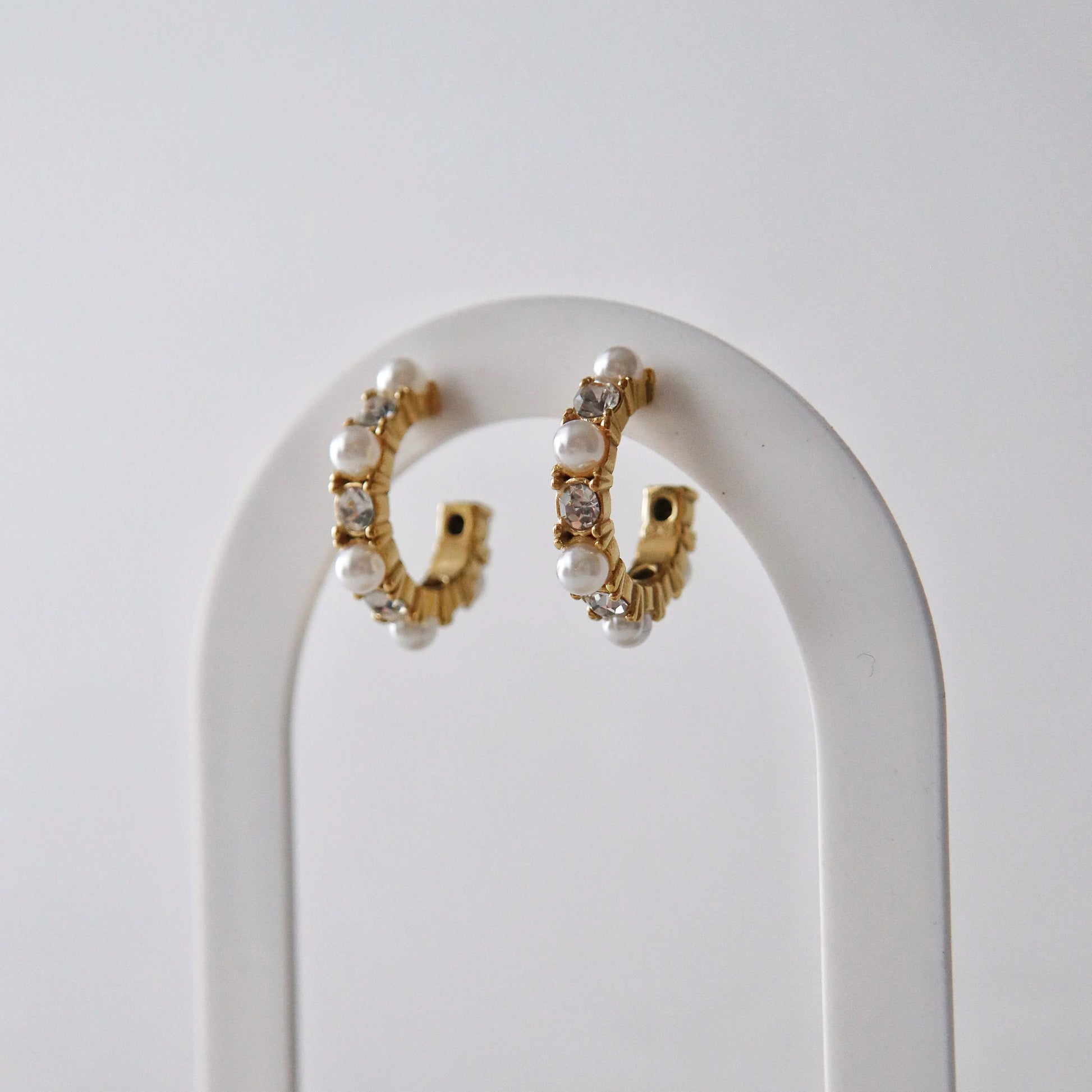 The Lani Hoops combine pearls with sparkling CZ stones for a truly luxurious look. Perfect for special occasions or adding a touch of glamour to any outfit, they are a statement of elegance.