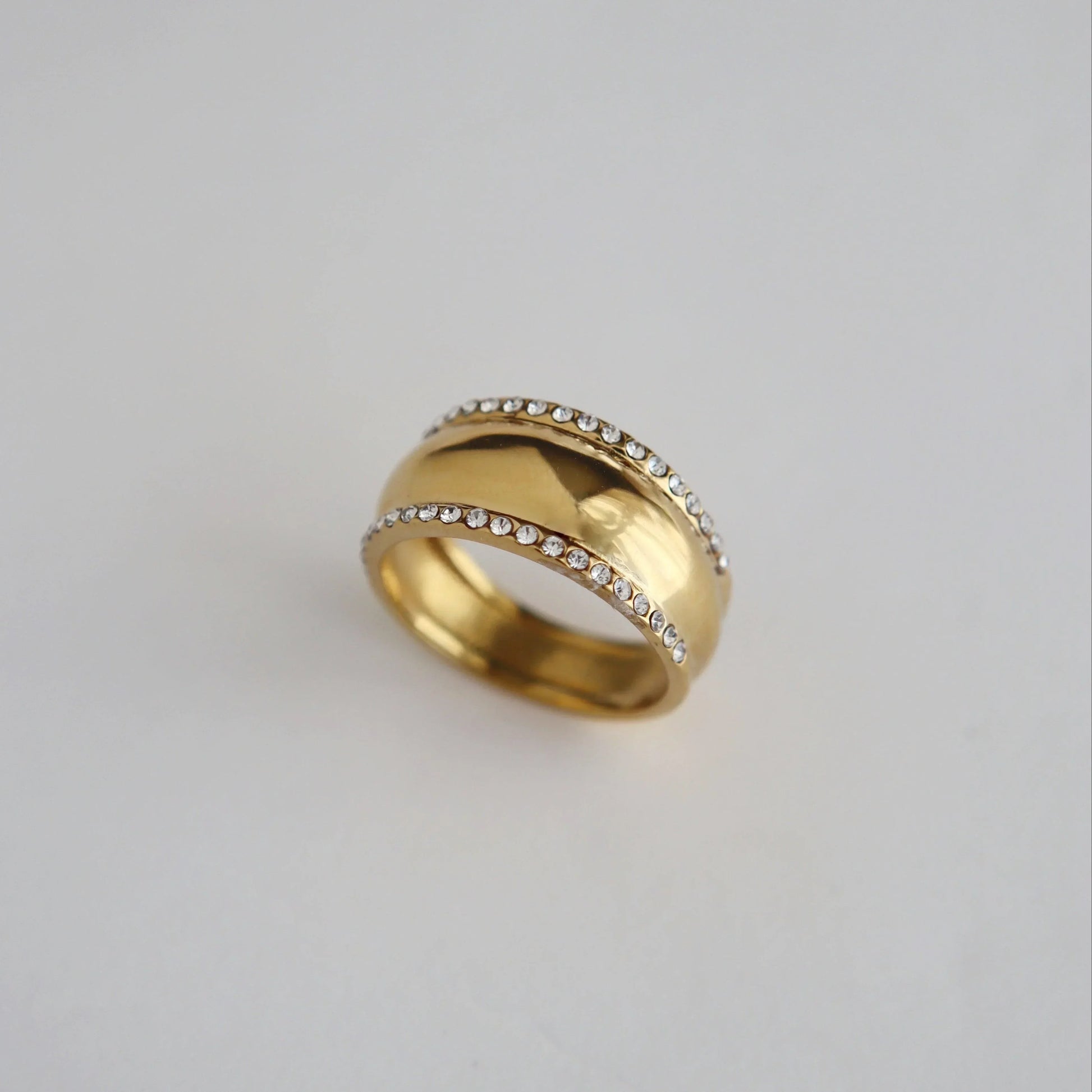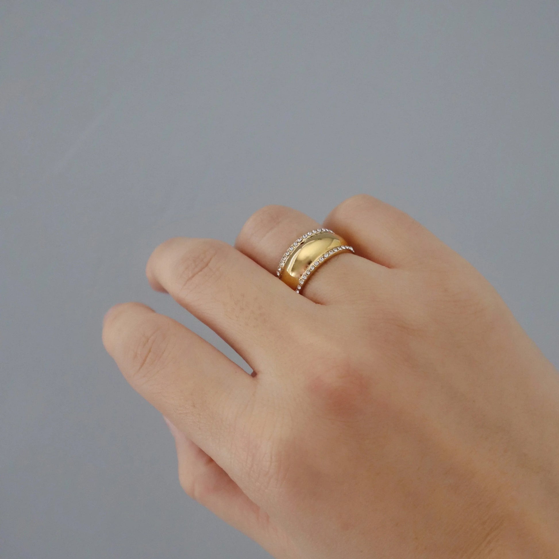 Meet your new go-to ring for that perfect mix of bold and glam! The Lara Ring is a chunky ring with two rows of sparkling cubic zirconia stones that frame the ring. Perfect for both everyday wear and special occasions.