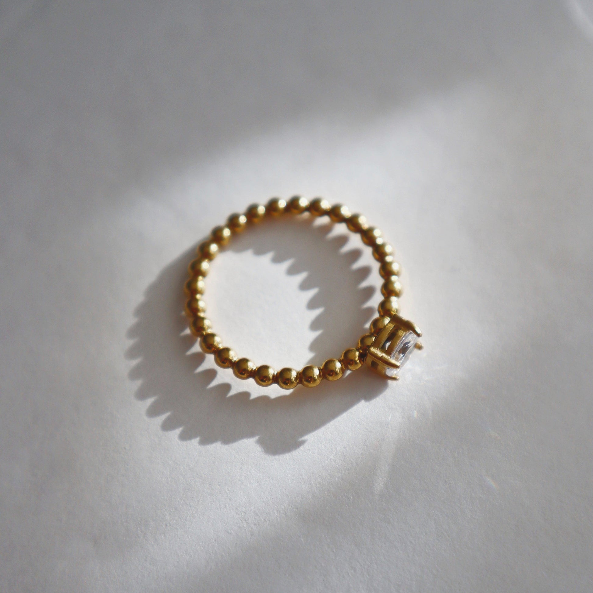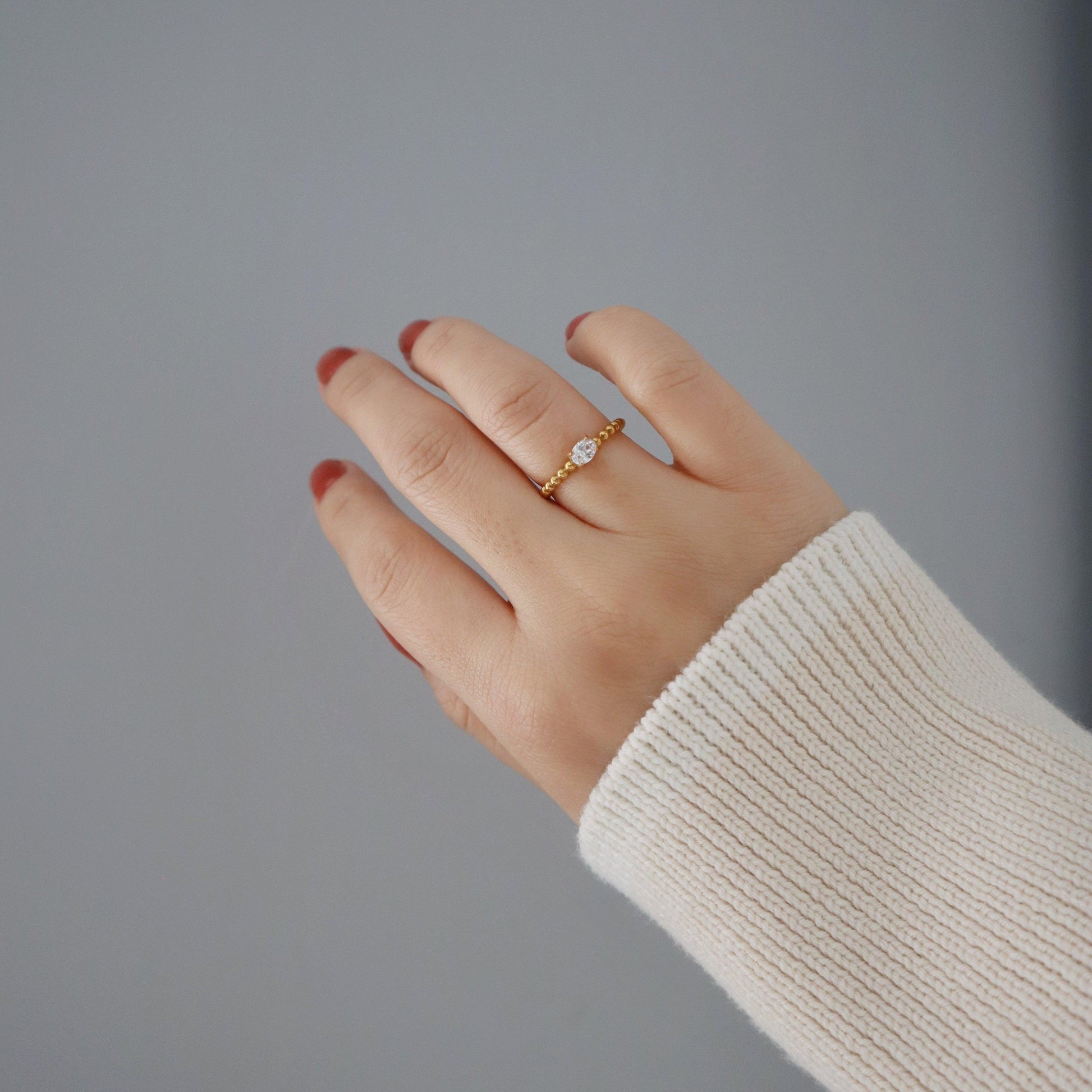 Oval CZ Beaded Ring | Dainty Everyday Ring