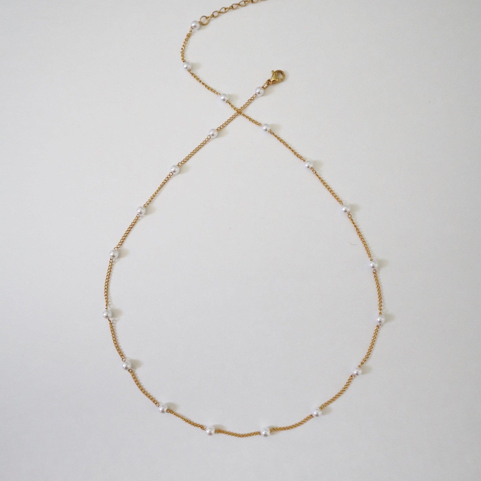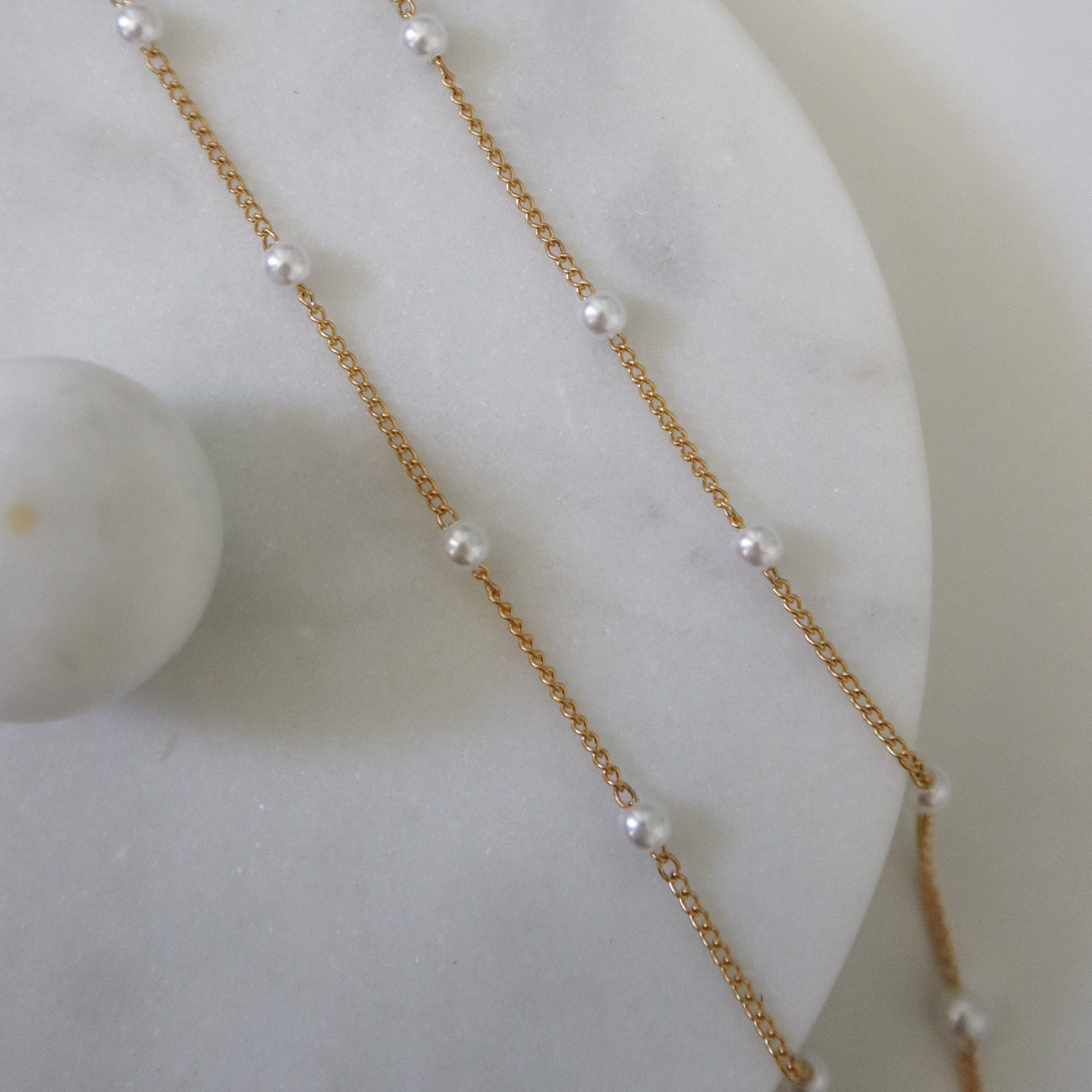 Elevate your look with our Pearl Satellite Chain. Perfect for the pearl lover, this delicate chain adds a touch of femininity and girly charm to any outfit. A must-have accessory for those who appreciate timeless elegance and classic style.