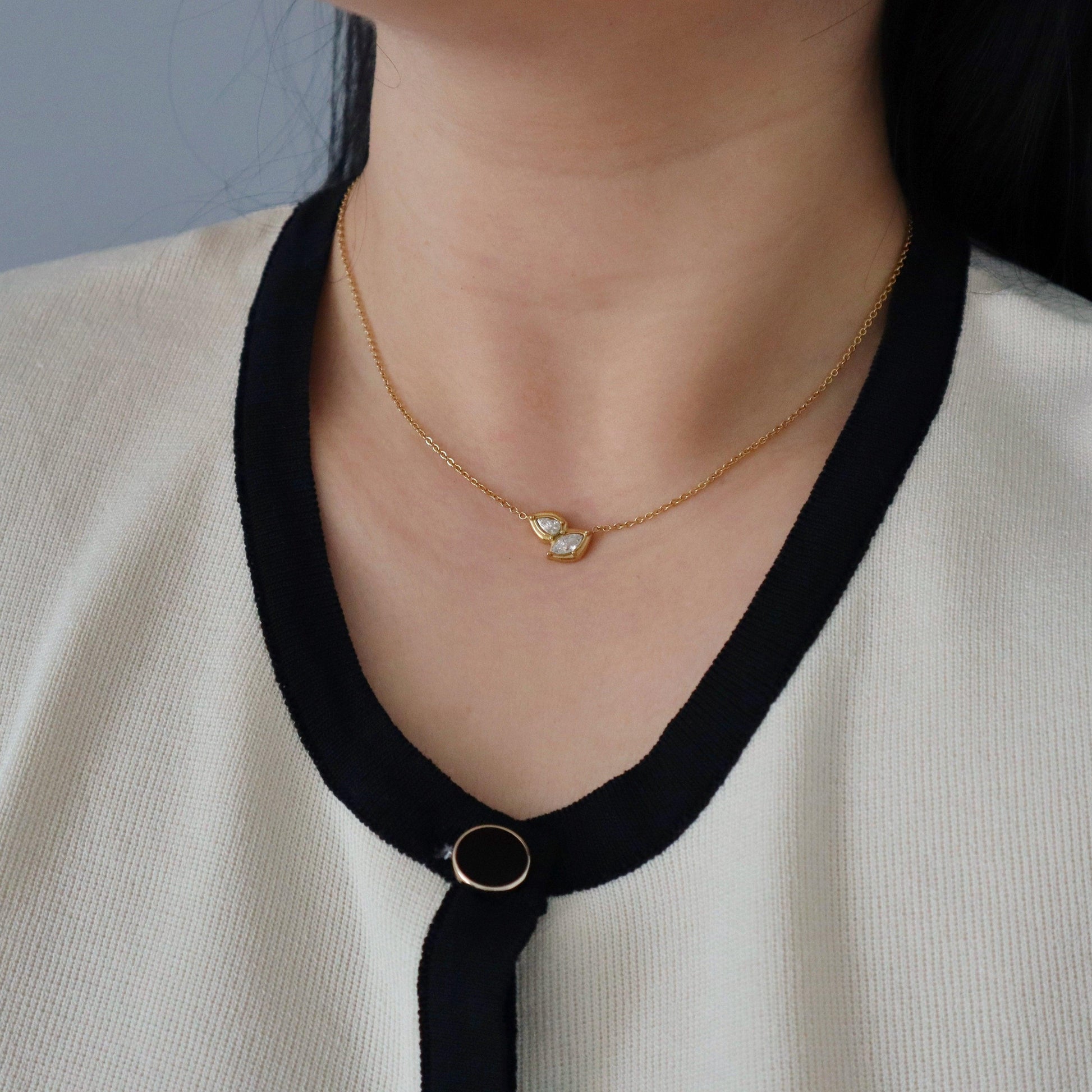 The Rianne Zircon Necklace features a beautiful pendant with two CZ stones; its minimalist and chic design adds a touch of elegance to any outfit. Elevate your outfit and make a statement with this beautiful, classic necklace.