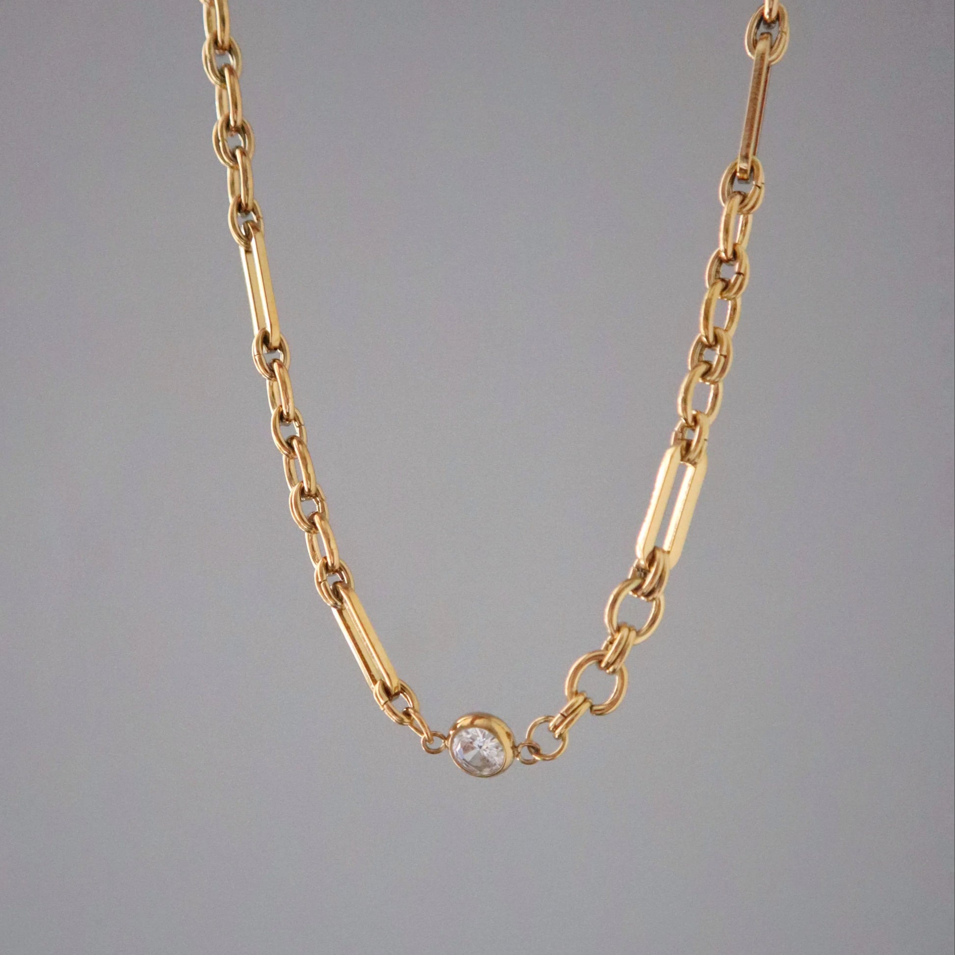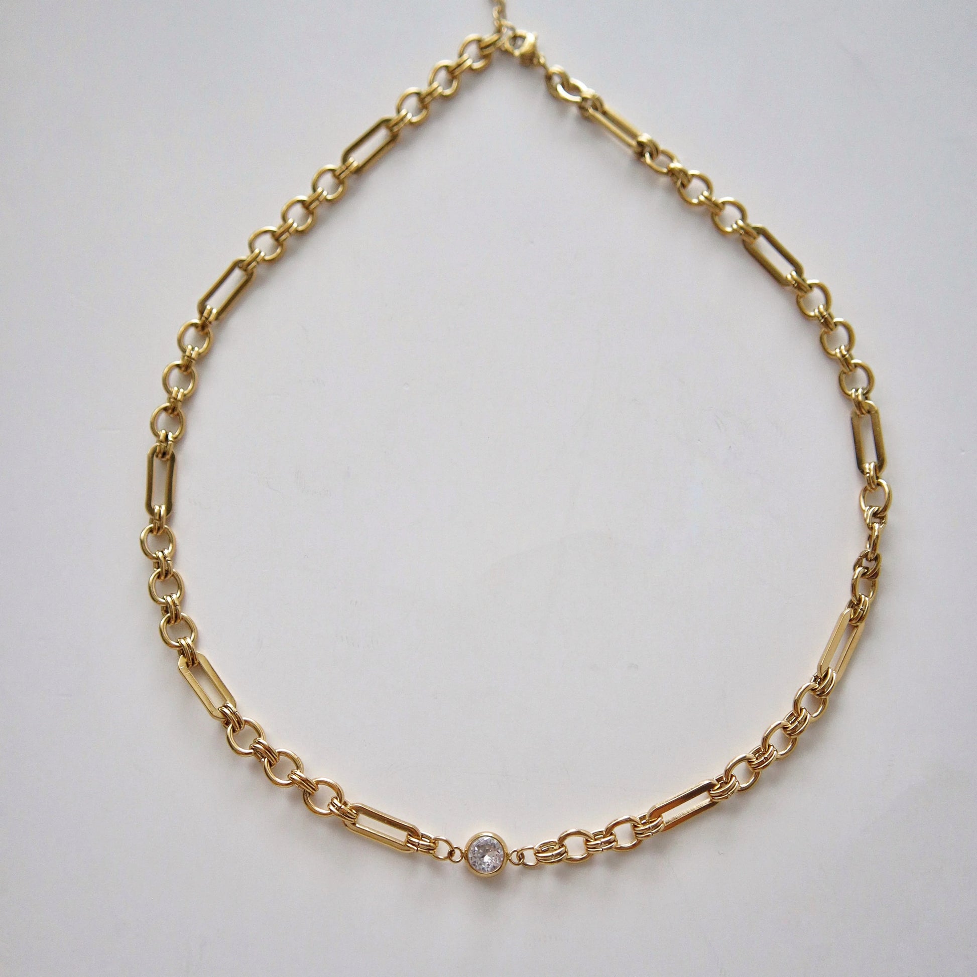 A modern twist on a medium-sized chain, the Solenne Chain Necklace features a single sparkling CZ bezel stone at its center. Sleek, versatile, and effortlessly chic, it’s the perfect accessory to help you stand out.
